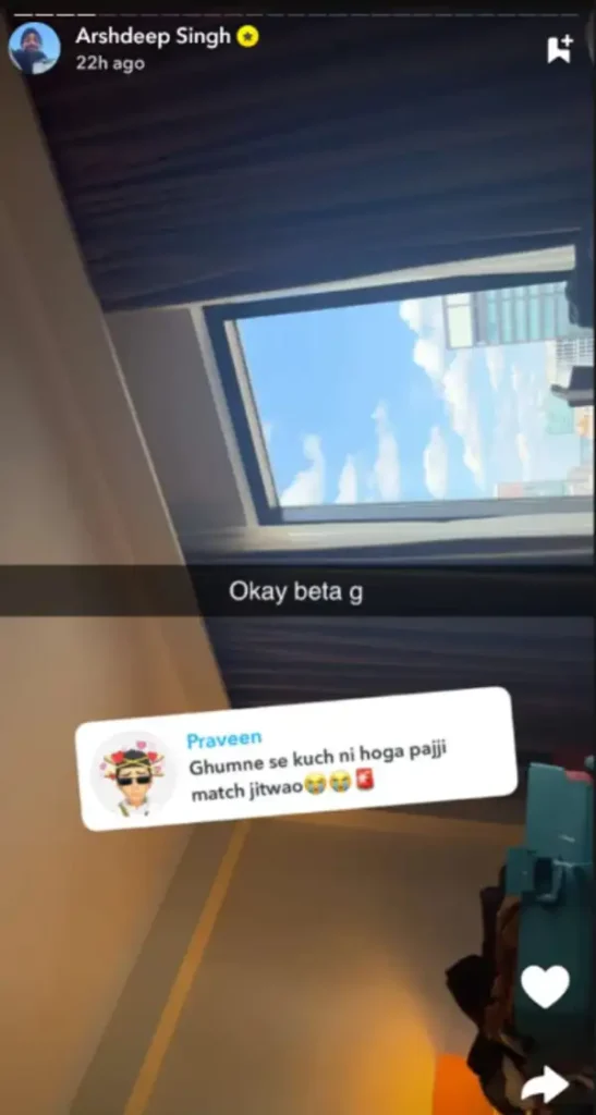 A fan sent Arshdeep a mean message on Snapchat recently. “Ghumne se kuch ni hoga pajji, match jitwao” (Roaming around won’t help, win matches). They said he should focus on winning matches instead. The fan clearly wanted to hurt Arshdeep’s feelings.